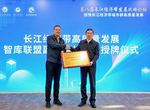 Fu Hong presented the plaque for Vice Chair Unit of the Yangtze River Economic Belt High-Quality Development Think Tank Alliance to the Hubei Provincial Strategic Planning Center. Qin Zunwen, Dean of the Yangtze River Economic Belt Research Institute, released the research report titled Layout and Development of Sub-Provincial Central Cities in the Yangtze River Economic Belt. The report systematically reviews the development status of sub-provincial central cities in the Yangtze River Economic Belt, offering theoretical reference for their practical advancement.