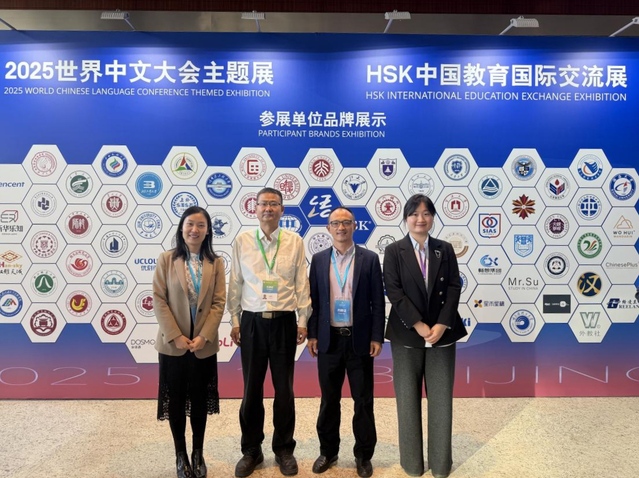 From November 14th to 16th, the 2025 World Chinese Conference was grandly held at the China National Convention Center in Beijing. Vice President He Huigang attended the conference upon invitation, accompanied by representatives from the Office of International Exchange and Cooperation and the College of International Education. They also participated in the 2025 World Chinese Conference Thematic Exhibition and the HSK China Education International Exchange Exhibition.